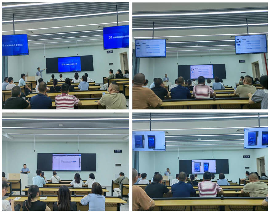 在B-109多媒体教室工程师向大家示范操作了教室设备基础操作使用方法。工程师从教室设备的开关机讲起,按照使用顺序系统讲解了各按键的使用、设备的基础使用、其他运用场景、无线传频等内容。