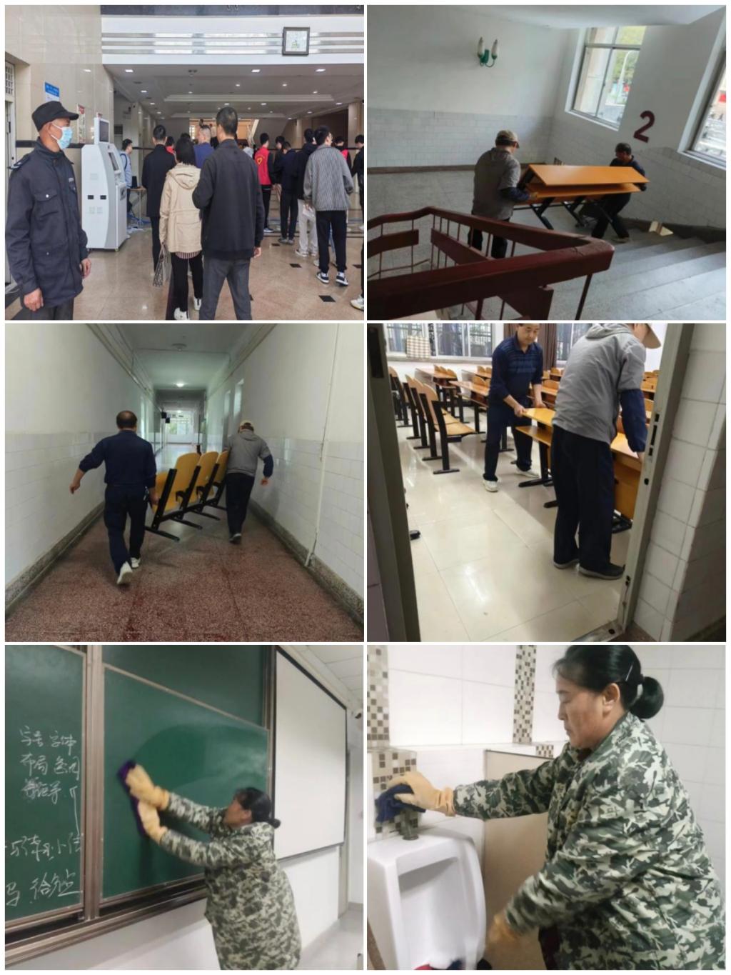 根据上级指示精神,结合中心工作安排,中心各部门立即着手开展相关工作。多媒体技术人员提前调试考场电子钟、打铃、考试全程视频监控等设备;保洁员对教室进行彻底的卫生大扫除,仔细排查课桌椅的完好情况,保证考场桌椅整齐及考场设施的完好;楼栋安全员模拟演练按照要求按时开启和封闭考场并配合保卫部门做好考试楼栋的人员清理工作;应急维修人员按需补足1教课桌椅;综合事务部人员按要求设置电子显示屏字幕,通知考务服务人员注意事项,强调工作纪律。