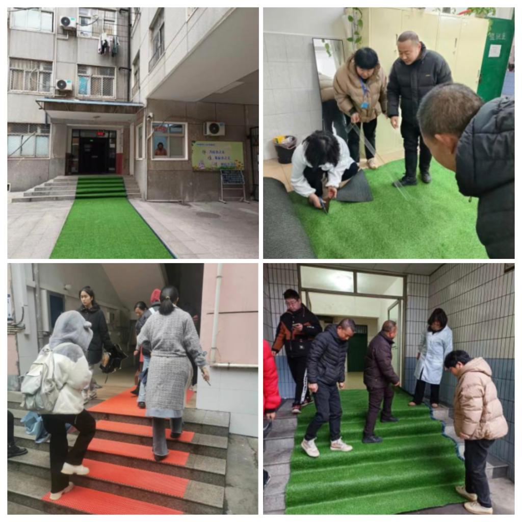 为保障同学们出入宿舍安全,12月15日下午,各社会公寓、校内各宿舍楼栋管理人员不顾严寒,将所有宿舍楼防滑垫全部铺设到位。经过一下午的努力,为同学们提供了安全保障的同时,铺设过后的宿舍楼也展现出不一样的风采,仿佛添上了围巾似的,为寒冷的冬季增添了一丝暖意。(学生宿舍服务中心 供稿)