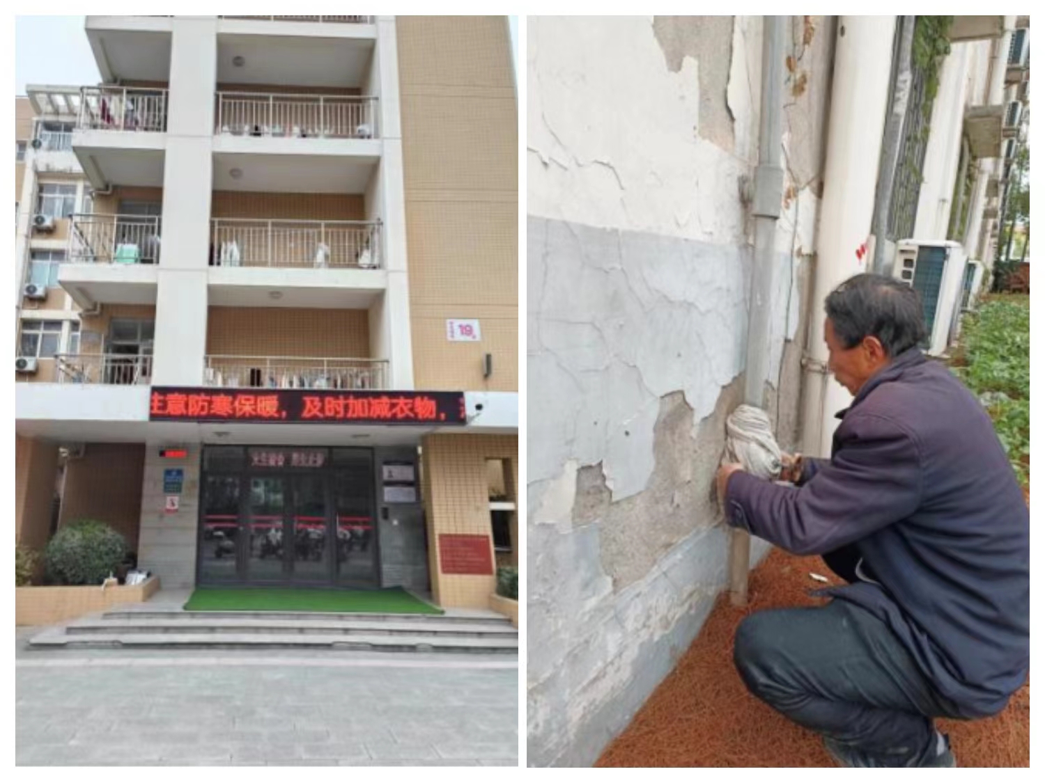 中心通过楼栋电子显示屏,提醒在住师生员工做好防范降雪降温天气的准备,及时添衣保暖、注意出行安全。中心水电工为裸露在户外的阀门穿上了保暖衣,让它们能安然无恙的过冬。