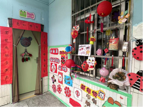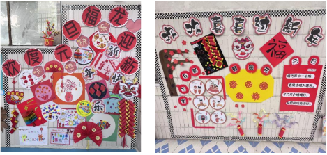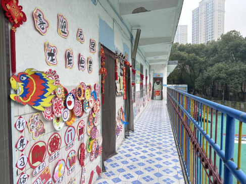 为了给幼儿营造热烈、欢快、喜庆的活动气氛,教师们进行全园大扫除,辞旧迎新,巧手装扮新春环境,创设节日氛围。园内弥漫着庆祝元旦的节日“芳香”,福袋飘扬,灯笼点缀,亮丽一新,热情洋溢着欢天喜地的新春气息。