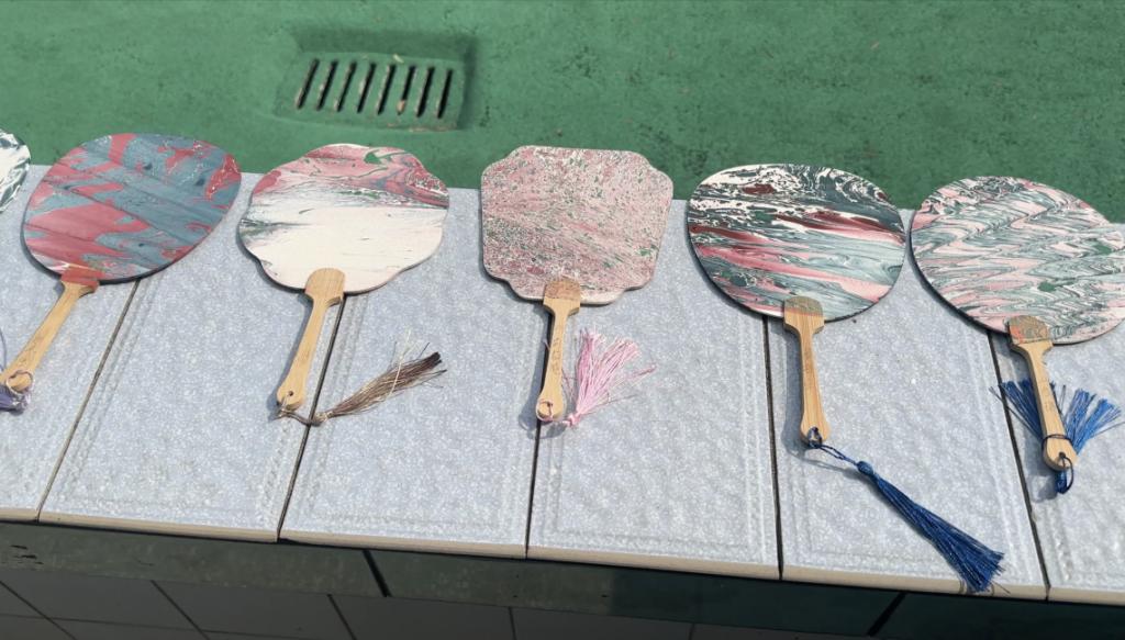 经过几个小时的努力,孩子们终于完成了属于自己的漆画扇作品。当他们手持色彩斑斓、图案独特的扇子时,脸上都露出了自豪的笑容。