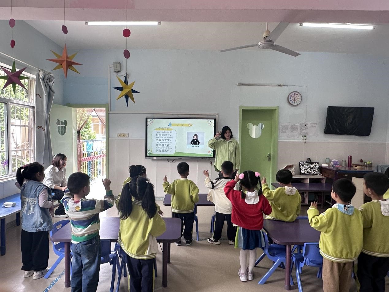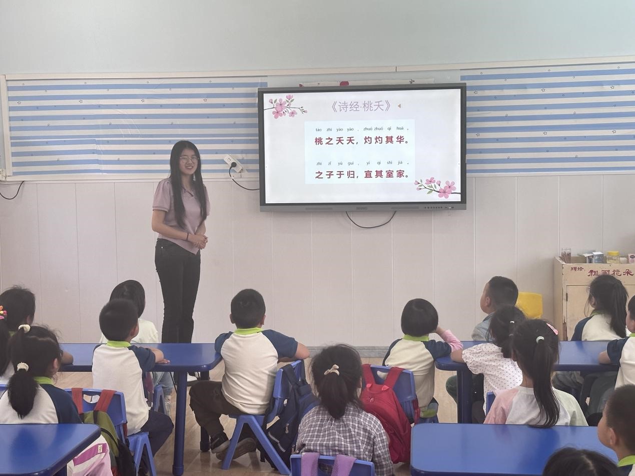 为了让小朋友们更好地理解和记忆所学知识,杨蓉副教授带领大学生们精心准备了动画片、手势舞和游戏等环节。在手势舞的学习中,小朋友们模仿着大哥哥大姐姐们的动作,一边跳舞一边背诵诗词,既活动了身体,又加深了对诗词的记忆。