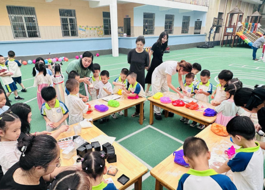 在老师和家委会代表的指导下,孩子们亲手制作手工月饼黏土,感受节日的喜悦。孩子们变身成为小小糕点师,小心翼翼地揉搓面团,包裹馅料,压模成型,每一个步骤都充满了期待与乐趣。一个个形态各异、色彩缤纷的月饼从模具中新鲜出炉时,孩子们的脸上洋溢着满满的成就感与笑容。