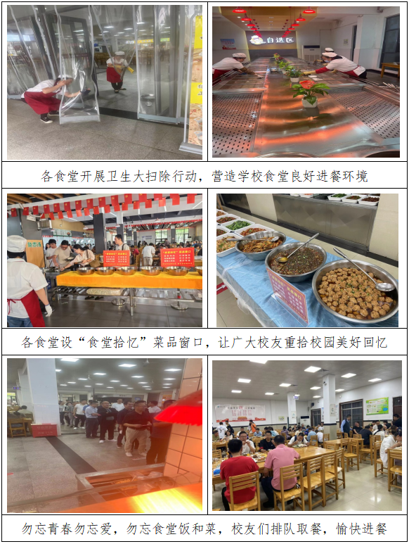 粗茶淡饭尽显当年味,欢声笑语满溢同窗情,后勤饮食人用心、尽力、倾情服务在校师生及返校校友与家人,树立了我校后勤饮食部门良好形象,展示了我校后勤饮食员工良好风貌,为伟德体育第十六届“校友节”活动添上了后勤饮食浓厚光彩的一笔。