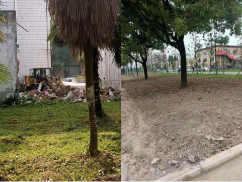 65日,办公室组织人员及车辆对全校的枯树叶、树枝等垃圾进行清理处置;67日,为确保无障碍通道安全,在14教西边无障碍通道安装扶手,对南大门花坛进行环境整治,铺植草坪;68日,组织人员和车辆对东三食堂西边场地的建筑垃圾进行清理,并对场地进行平整。这些天里,工程管理办公室人员头顶烈日,干得热火朝天,清扫垃圾杂物、除杂草落叶、维修安装扶手、平整土地、草坪……但没有一位员工有任何怨言,始终以饱满的热情参与到这次校园整治活动中。