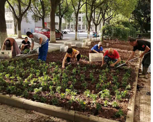 绿化人员合理规划,精心布局,按照“先恢复主干道周围的绿化景观”的思路,组织人员开展翻地、除杂、平整场地、施肥等工作,对校内的八角金盘、吉祥草、麦冬、树状月季进行移栽,依形造景,既节约了成本,又美化了校园。