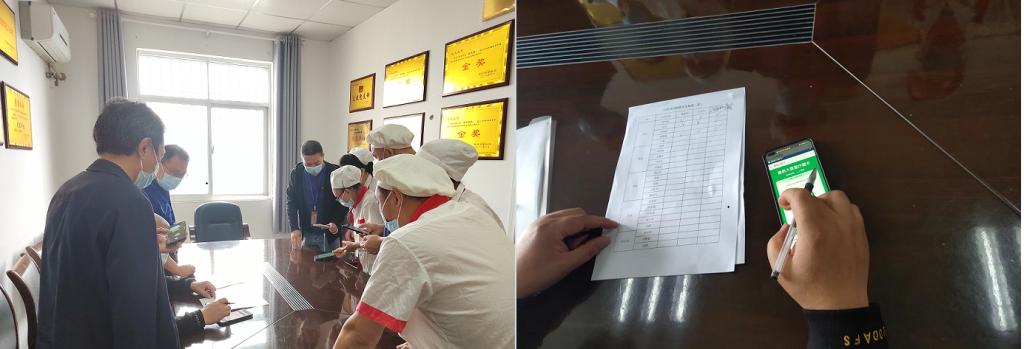 检查组在饮食服务中心进行现场检查