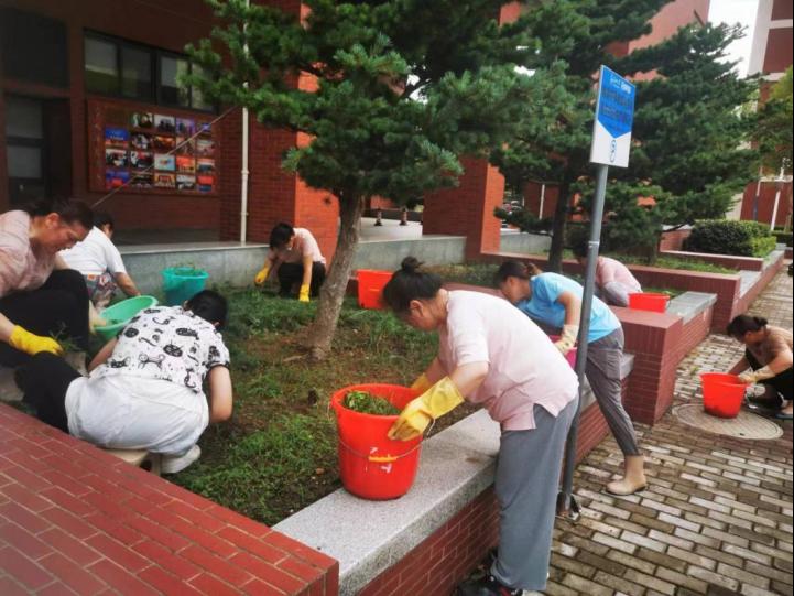 针对高温酷暑,做好校园绿植、草坪的抗旱、养护、修剪、杂草清理及施肥等工作。为应对极端天气情况,后勤部门检查清理校园内雨水井、排水口,暴雨后及时清理被大风刮倒影响交通、环境的树木、树枝,确保排水及时、道路通畅,消除安全隐患。