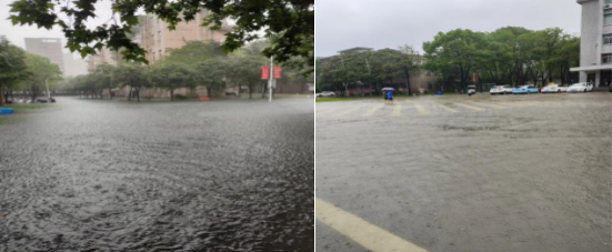7月1日,荆州城区迎来新一轮强降雨,荆州校园东西校区许多地方出现明显内涝,严重的地方积水成河,严重影响师生正常出行。