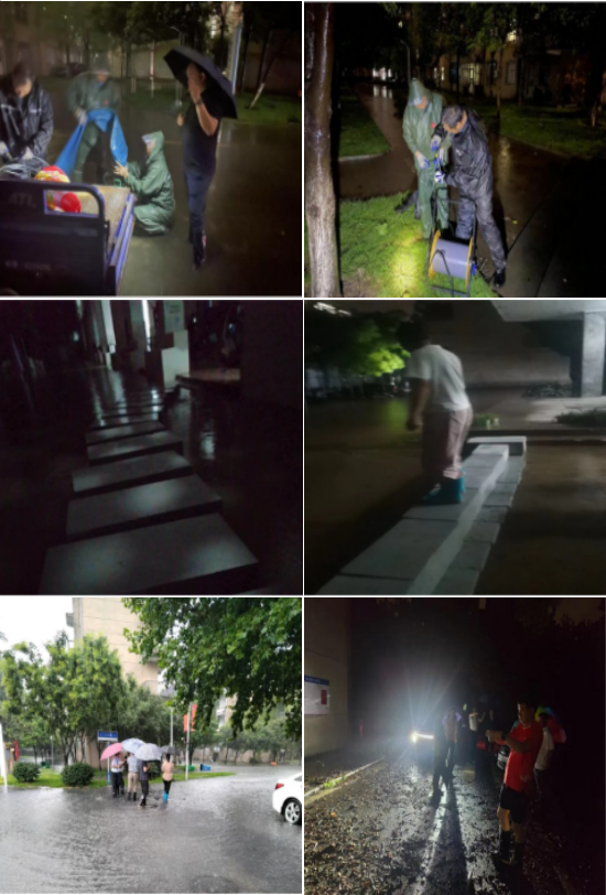 面对强降雨极端天气,党委副书记敖廷华带领后勤部门负责同志、后勤各科室、中心负责同志迅速行动,积极应对,顶风冒雨实地查看积水情况,架设抽水设施,疏通排水管网,扶正倒伏树木,调运水泥砖块铺设临时通行便道,保障广大师生出行安全。