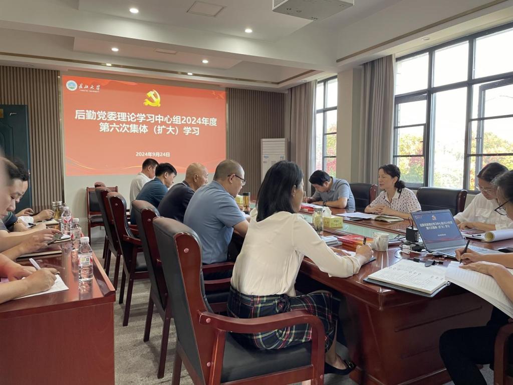 9月24日上午,后勤服务集团党委理论学习中心组在东校区后勤楼407会议室开展2024年度第6次集体(扩大)学习,会议由集团党委书记王红艳主持。中心组全体成员、后勤各党支部书记参加会议。