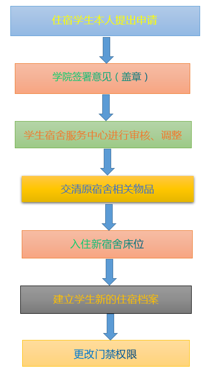 学生宿舍服务中心学生事务服务流程图(住宿调整)