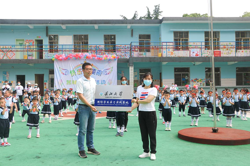 庄严的升旗仪式拉开了庆祝活动的序幕,莅临领导和园长分别致词,为孩子们送上节日的祝福。活动开始前与会领导为幼儿园的健康宝贝们颁奖,校工会为小朋友们送上了节日的贺礼,国际学院副院长伍廉松与幼儿园园长方志琳举行“国际学生实习实训基地”签约挂牌仪式,象征着国际教育学院将在幼儿英语教学、教研等方面建立长期稳定的合作关系。