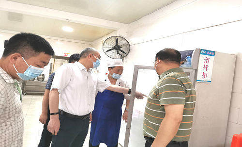 在细致查阅了食堂员工晨检记录、食品留样记录等第一手管理资料后,冯校长对后勤饮食中心坚持疫情防控和安全生产两手抓,两不误,确保学校师生饮食安全、服务质量提高所取得的成效予以肯定。同时,冯校长还叮嘱:一定要把好食品卫生关、安全生产关,积极为维护校园和谐稳定贡献后勤力量。(饮食服务中心  供稿)