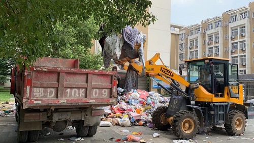 物业中心保洁人员克服高温酷热和清运垃圾量大的困难,7-8月份清理毕业生离校、搬迁、转运的学生寝室1000多间。自7月2日学校启动毕业生返校工作,到8月28日学生全面复学工作以来,共清理垃圾139车,其中重型装载车39车。