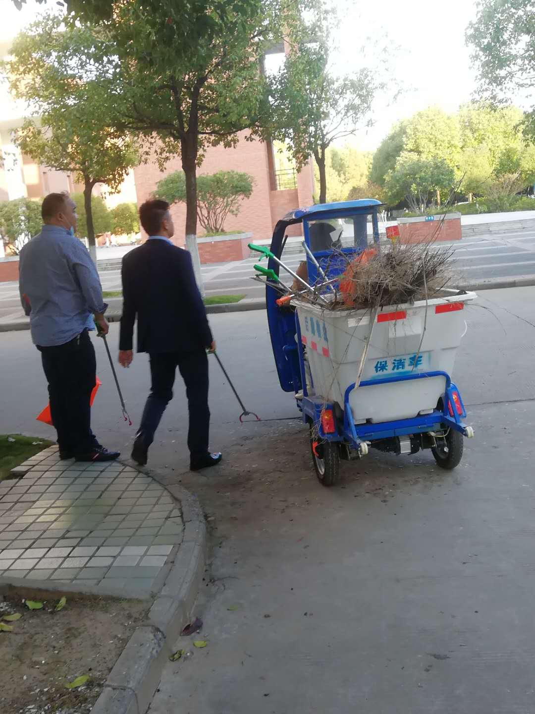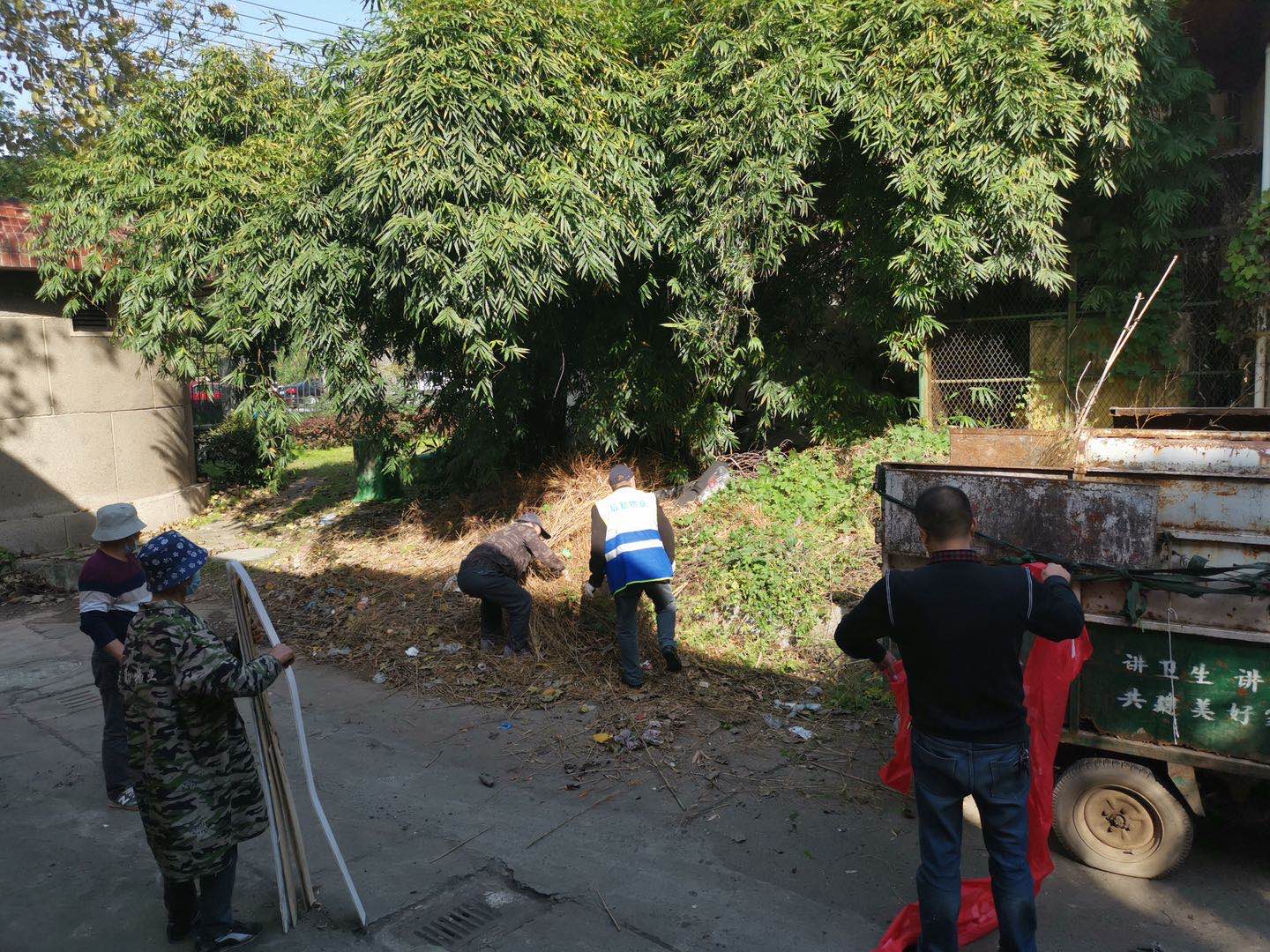 10月30日,物业服务中心全体管理人员在做好日常工作的同时,采取划分区域,分片包干的形式,同一线“捡白”人员一道,共同对校园白色垃圾、枯树枝、砖块杂物等进行专项清理。