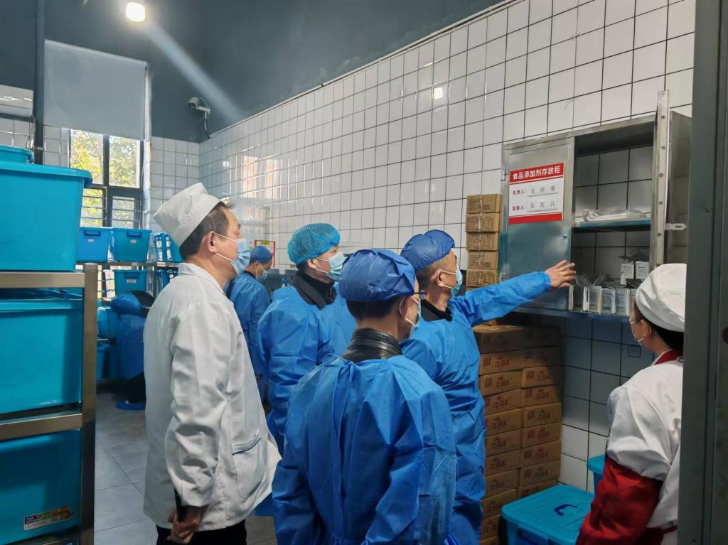 在随后的现场检查中,检查组一行深入我校东三、东四食堂,重点就食堂分区结构布局、安防设施、燃气管理、清洗消毒设施、生产加工、食品留样、食品添加剂使用、“互联网+明厨亮灶”系统运行、环境卫生等九个方面的情况进行了细致的检查。