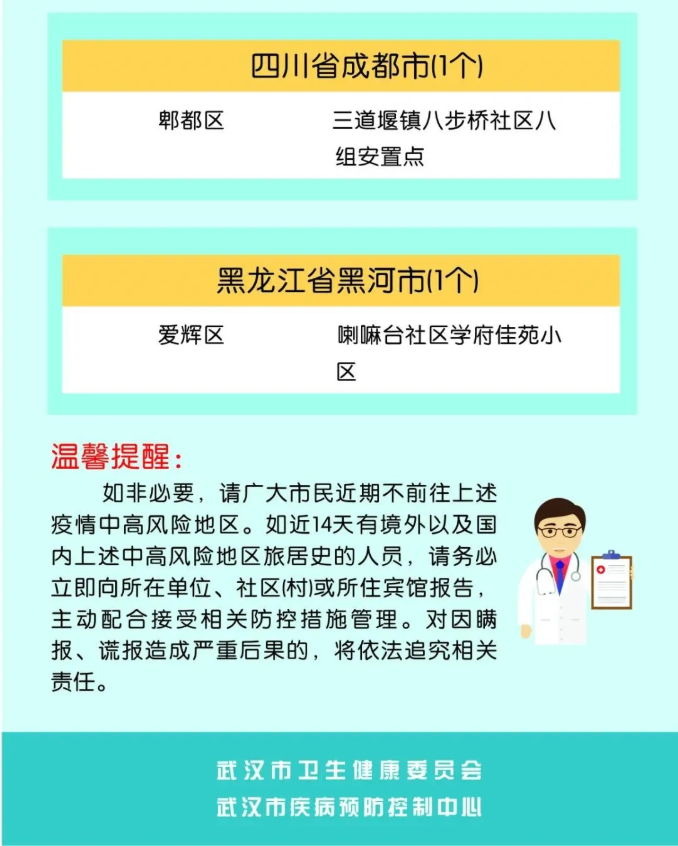 三、如无必须,近期最好不前往黑龙江省黑河市爱辉区,必须要前往的,请提前了解当地防控要求并做好个人防护;从黑龙江省黑河市爱辉区返鄂后,应主动配合我省的相关防控措施。