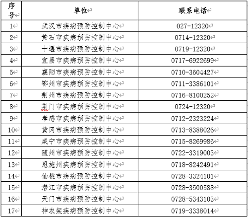 附件:湖北省各市(州)疾控中心咨询热线