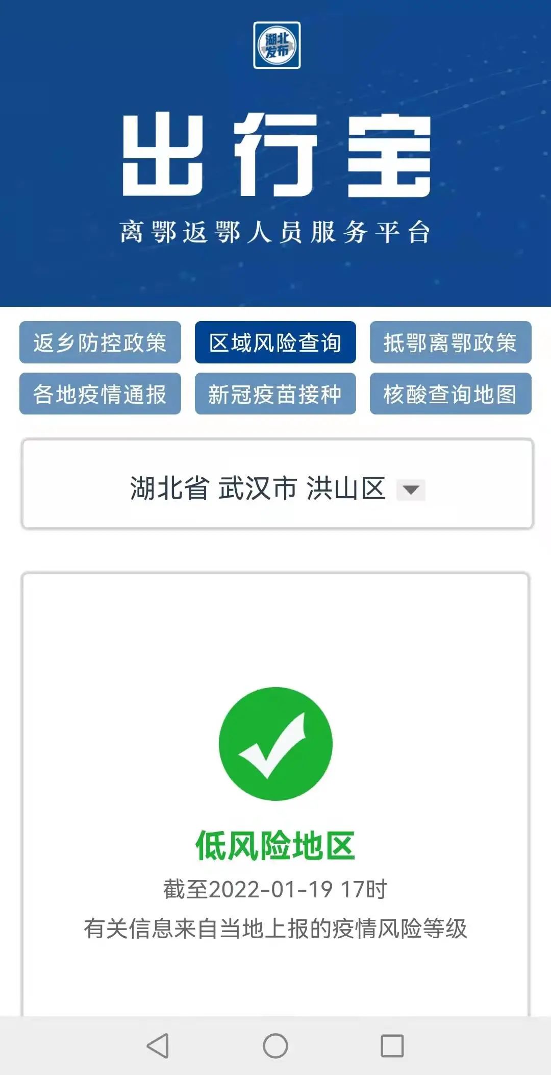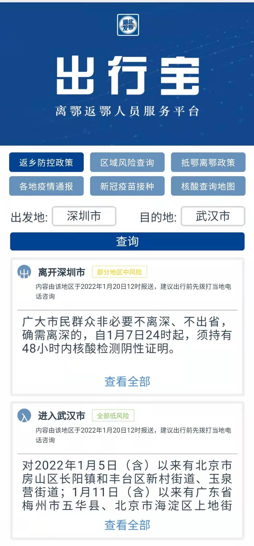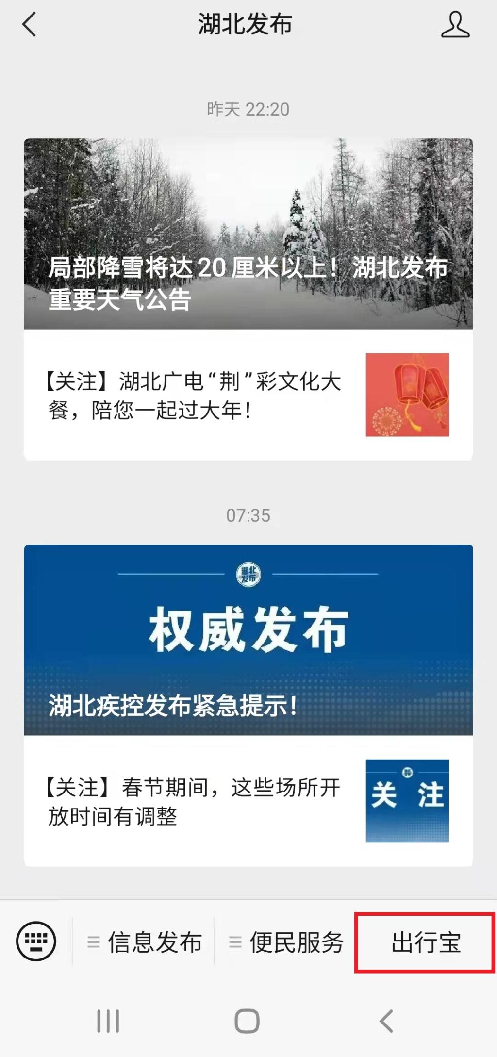 “出行宝 离鄂返鄂人员服务平台”