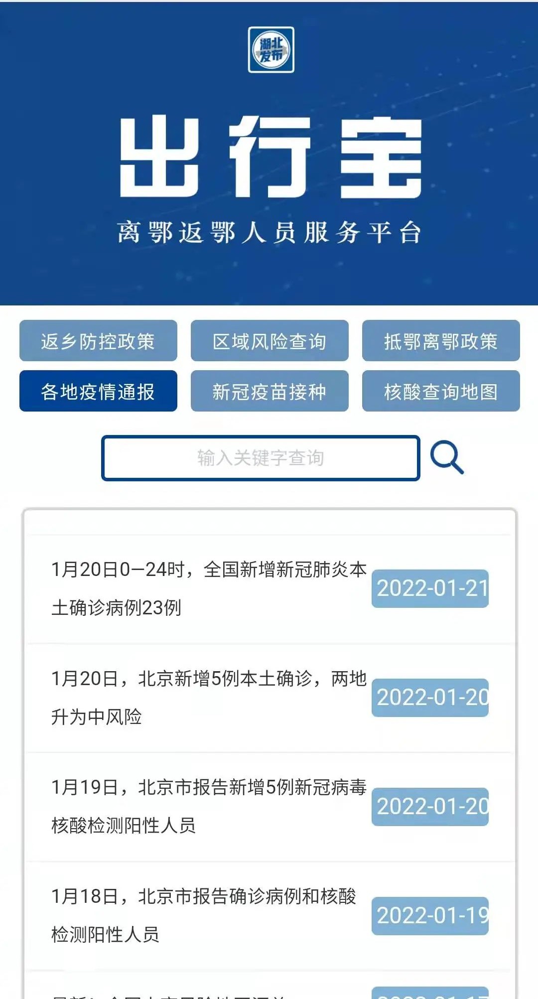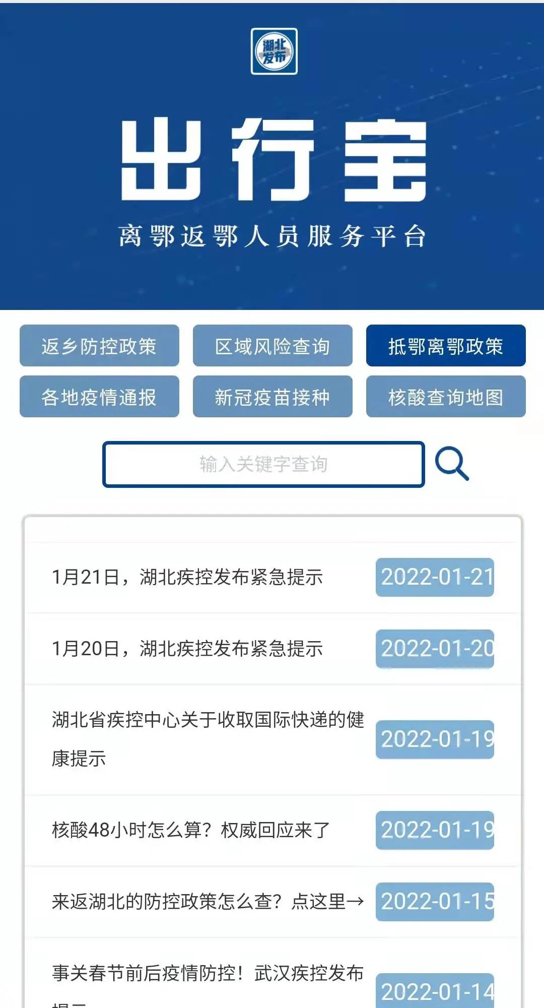 功能一:返乡防控政策