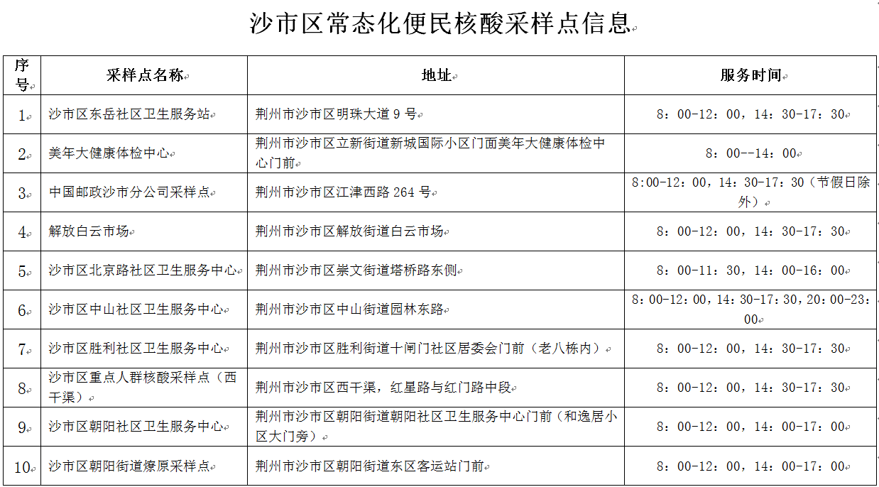 沙市中心城区关于新增便民核酸采样点的公告