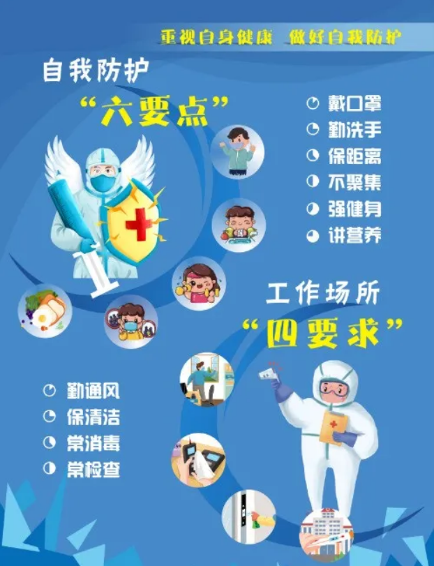 五、广大群众要时刻保持良好的个人防护意识,养成随身携带口罩,科学规范佩戴口罩(尤其是在乘坐公共交通工具和在公共场所活动时)、勤洗手、常通风、保持安全社交距离的卫生习惯;不扎堆、不聚会,倡导健康生活方式。