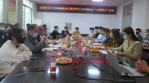 为学习贯彻二十大精神,推进“一下三民”实践活动走实走深,11月10日下午,后勤服务学生面对面座谈会暨给排水12001班11月主题团日活动在9教208召开。伟德体育党委书记方先尧,党务办公室主任范明军、饮食服务中心主任鲁平和学生宿舍服务中心主任魏永红;城市建设学院党委副书记秦良斌及学生工作负责人,给排水12001班全体学生参会。
