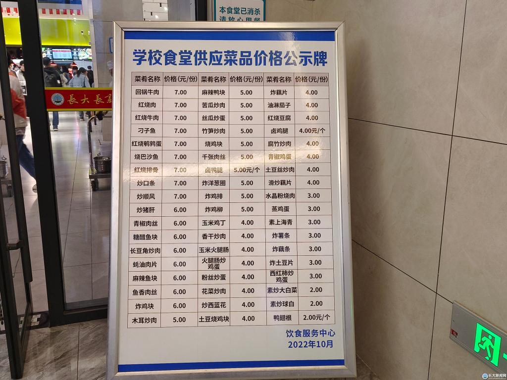 新闻网讯(学生记者 张浛玥)“回锅牛肉7元每份,西红柿炒鸡蛋3元每份……”近期,东、西校区共七个食堂门口,均多了一块菜品价格公示牌。每一道菜的价格都被清清楚楚地标注在上面。这是后勤集团饮食服务中心在了解到有学生反映“食堂单品菜价混淆、价格合计偏差”后迅速做出的回应。