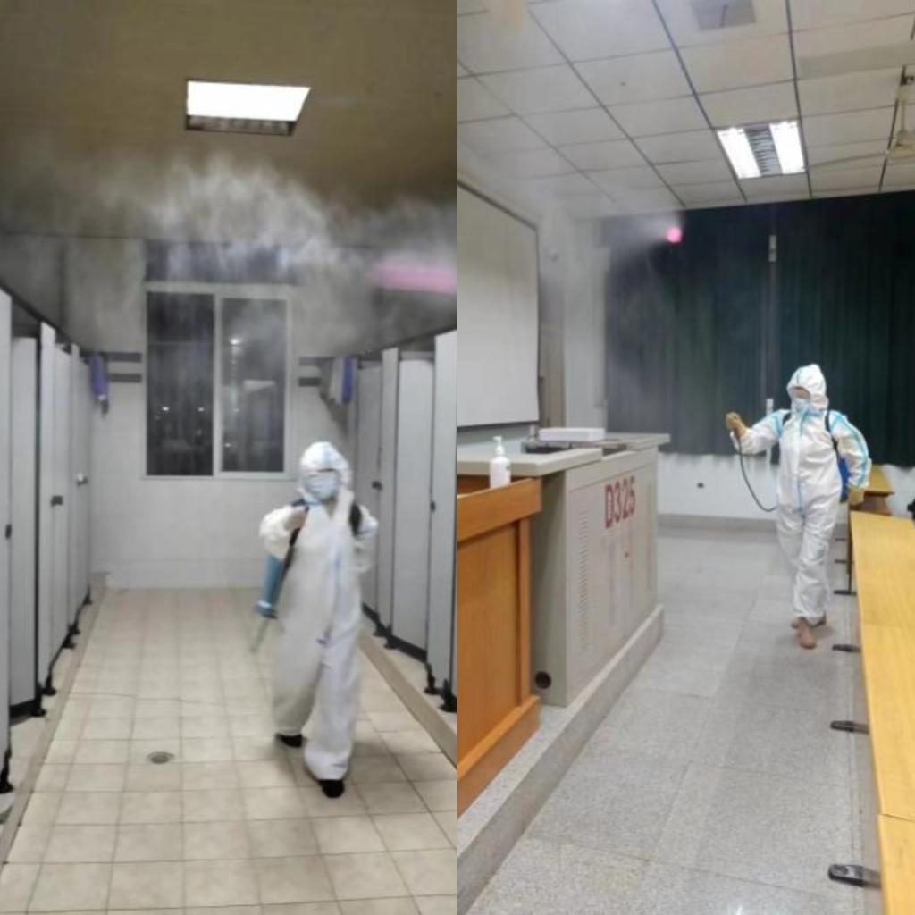 13#教是每次考试的“主战场”,王琼组长未雨绸缪,提前申购电动喷雾器,义无反顾参加消杀保洁。