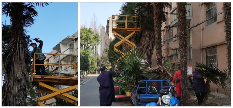 正月初九开始,绿化部门也投入到工作中来。工作中,他们不顾危险、不怕脏乱,清理枯枝,修剪树木,树上的陈年灰尘落在他们身上、脸上、甚至嘴里,他们也毫无怨言。