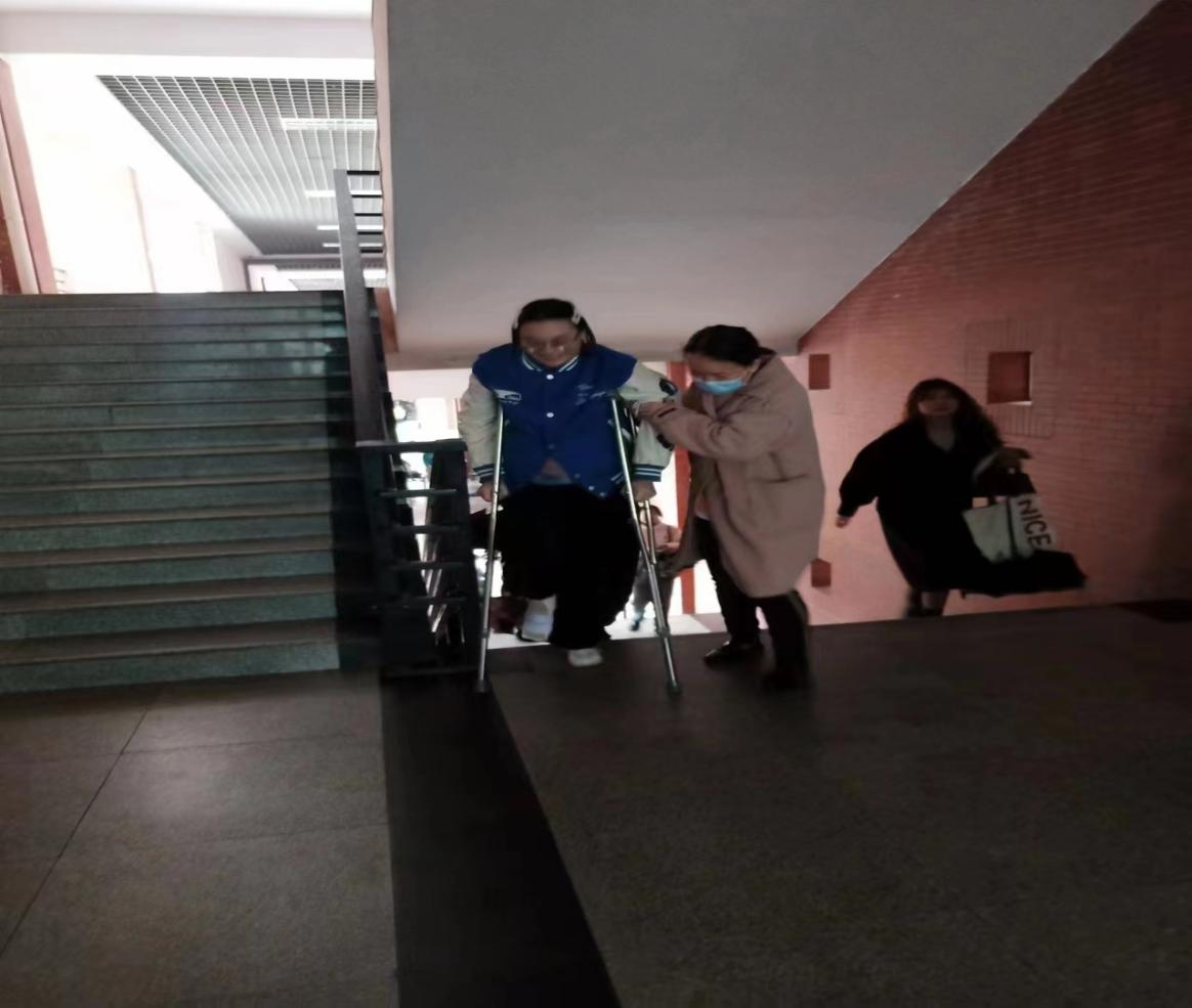考试当天,教室维护服务中心全体考务服务人员提前到岗,认真检查各项准备工作,对标对表把各项考务服务工作落到实处,以确保考试工作顺利进行。13号教学楼楼栋组王琼主管时刻关注着考生进场情况,当看到一位脚踝受伤行动不便的考生时,她第一时间安排保洁员王崇霞上前搀扶这名考生上楼,并把考生安全顺利送进考场。