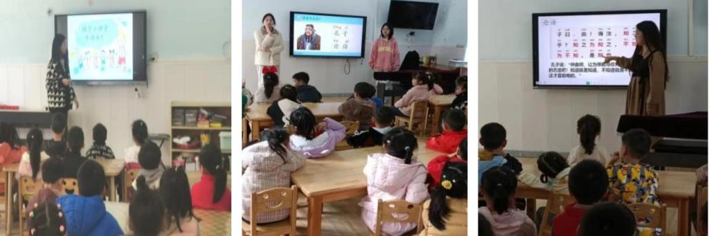 国学经典是民族文化的根本,是中国文化的根基。课堂上,教师以“古诗律动”“讲礼仪”“故事讲解”等形式言传身教,努力将国学经典教育渗透到幼儿的日常生活和学习中,帮助幼儿涵养古典文化底蕴,让幼儿们在良好的国学氛围中成长。