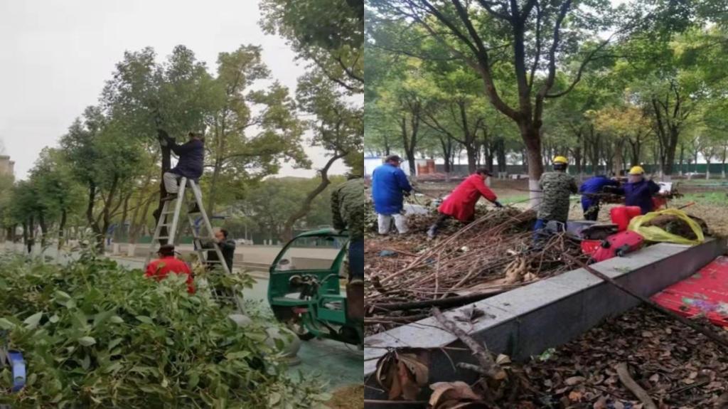 校园绿化人员根据工作计划,有序开展各项绿化工作,及时进行乔木修枝、清理草坪杂草、景点造型,进一步美化校园。