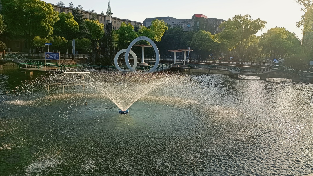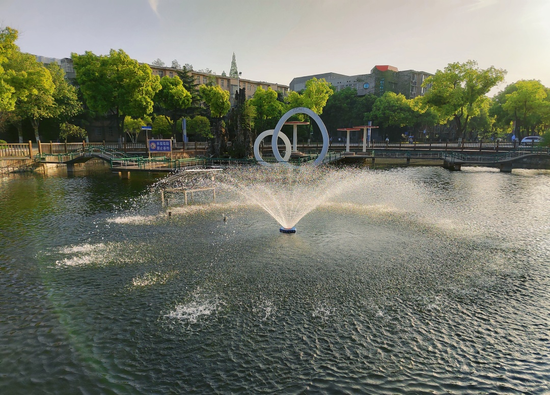 东校区人工湖喷泉开放啦!