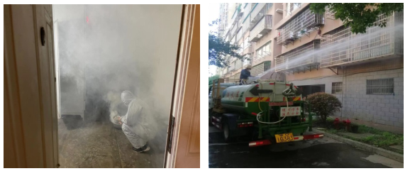 物业服务中心环卫清扫专班对18#19#学生宿舍区域进行杂物、落叶集中清理;绿化专班专业配置消杀剂对外围进行3次的连续3次环境消杀;保洁专班则统一行动对全部宿舍进行入户保洁并开展7次连续3次的消杀工作。杨平主任强调“要通过周密的工作安排部署,确保整治工作取得实效”。