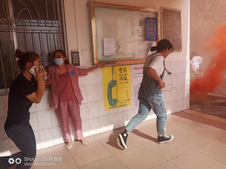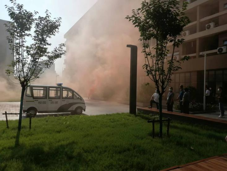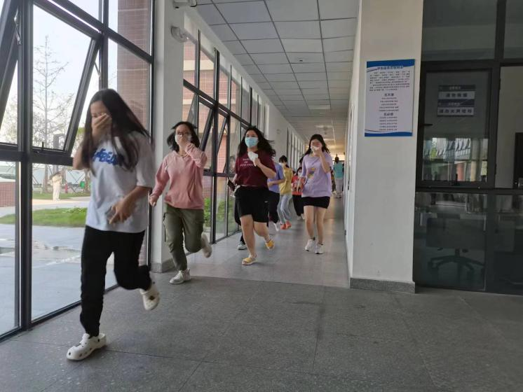 演练前,负责人员积极参与活动策划与协调,并对楼管员进行了培训。下午五点左右,随着警报声的响起,演练正式开始,同学们用手帕捂住口鼻弯腰前行,所有楼管员站在各通道口指引学生按照预定路线迅速逃离。短短1分钟左右,学生全部安全疏散至指定地点。整个应急演练活动紧凑有序、安全高效、临危不乱。