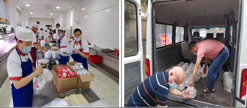 2、为学校新冠肺炎疫情防控指挥部工作人员、各院系疫情防控工作人员及学校疑似新冠肺炎隔离观察者提供送餐服务,一盒盒、一份份热乎乎的饭菜承载了后勤饮食人的温情,增强了大家战胜疫情的决心与信心。