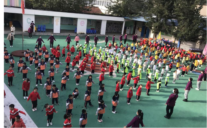 伴随着运动员进行曲,幼儿们列队齐整、服装统一,喊着整齐的口号、迈着矫健的步伐进入园内操场。庄严的升国旗仪式后,大型的集体韵律操拉开了趣味运动会序幕。