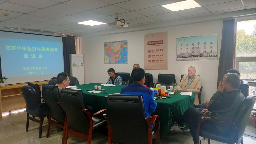 会上,罗晓华同志首先就东校区教学楼电铃管控系统的现状和一些问题做了具体介绍,表明教学楼电铃系统改造工作势在必行。郑世荣同志结合兄弟高校工作经验,提出了东校区教学电铃系统改造的基本方案。结合现有条件,对方案进行了认真讨论并形成最终方案。