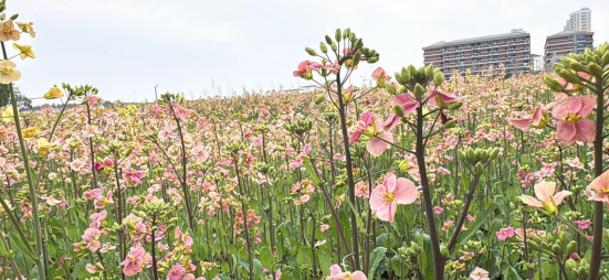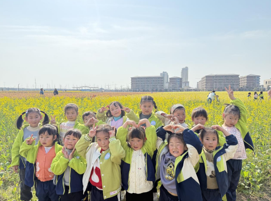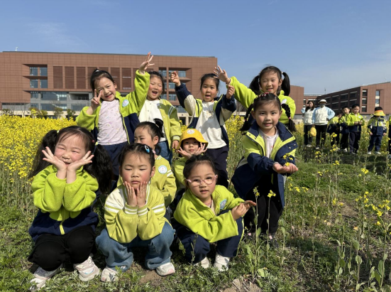 大班的小朋友们带着对春天的憧憬,走进伟德体育的校园,那里有一片色彩斑斓的油菜花海,正值盛放期,粉色、白色、橘红与金黄色的花朵交织在一起,美不胜收。
