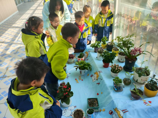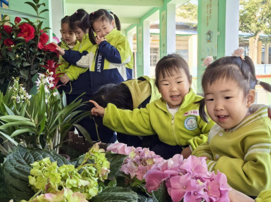 中小班的孩子们在园内开启探索春天的第一站。在老师的带领下,孩子们化身小小探险家,穿梭于各种绿植之间,有风信子、茶花、绣球花、郁金香、天堂鸟......从嫩绿的叶片到绽放的花朵,每一处细节都是他们眼中的宝藏,孩子们轻轻触摸,仔细聆听,感受着生命的律动,仿佛在与绿植进行一场无声的对话。