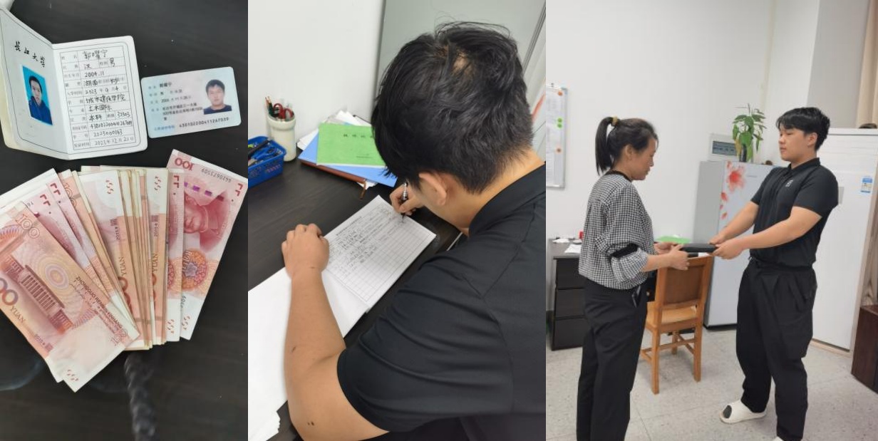 本网讯(通讯员 朱华)5月16日下午,教室维护服务中心16教保洁员李文涛在进行日常保洁时捡到一个装有2000余元现金及身份证、银行卡等物品的钱包。由于金额较大,李文涛赶紧将具体情况向区域长进行了汇报,区域长第一时间通过钱包内的身份信息联系到城建学院办公室人员,用最短时间便协助失主完成认领,以实际行动展现了后勤教服人的高尚品德。