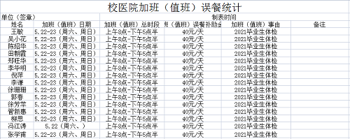 根据《伟德体育加班(值班)误餐补助管理办法(试行)》(长大校发【2019】83号)文件规定,现对校医院加班(值班)误餐情况(2021年5月22日至2021年5月23日)进行公示,如果对加班(值班)误餐情况有异议,可以通过电话向综合管理办公室反映,监督电话:0716-8060233。